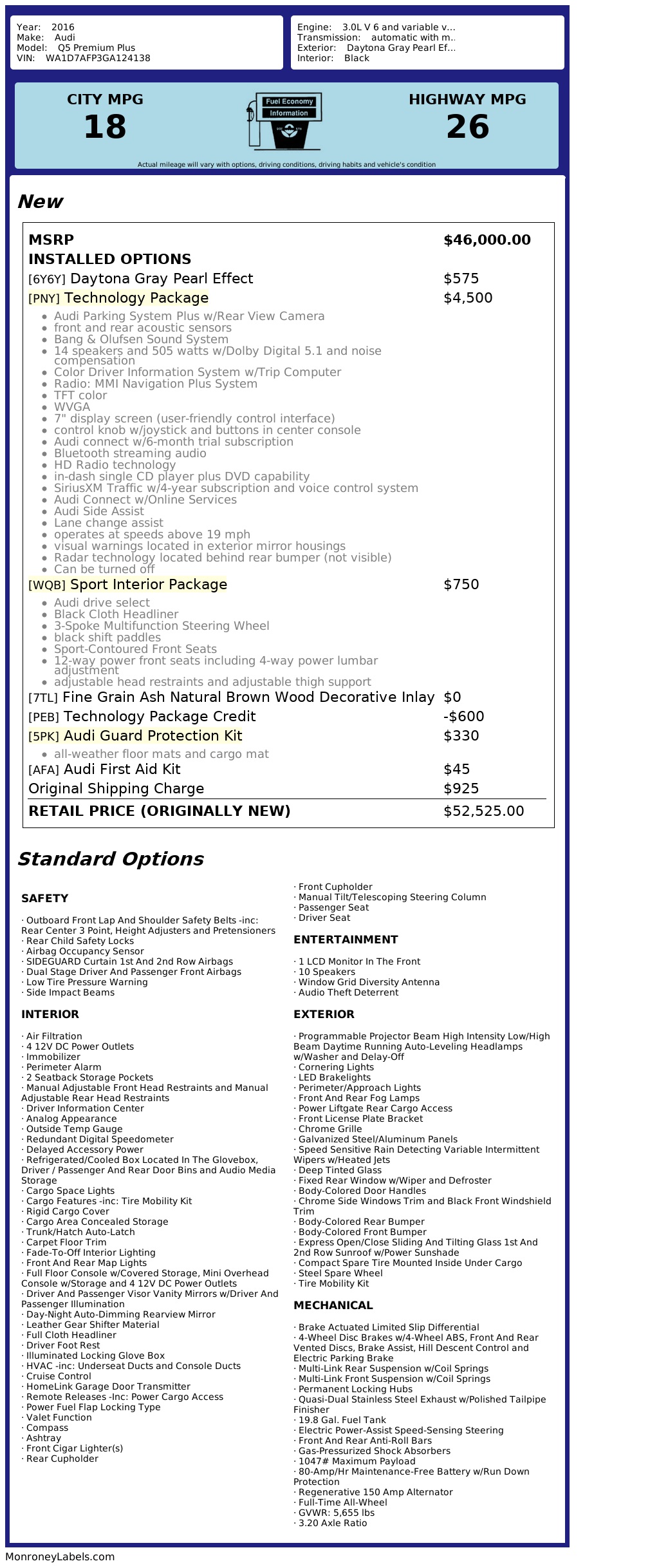 additional equipment [WQB] sport interior package $750.00
